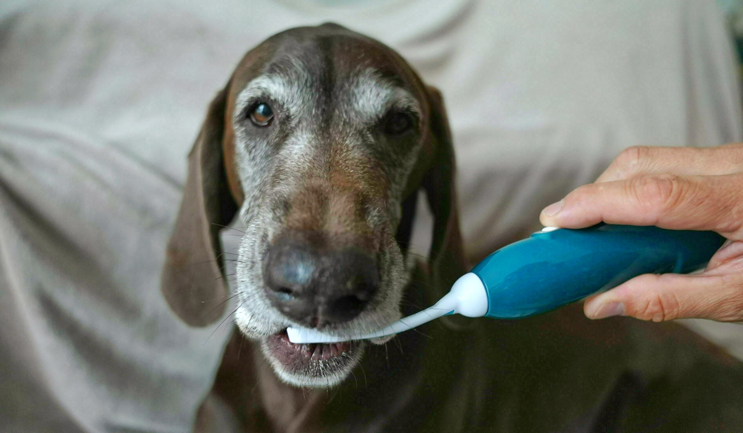 • in der Villa Bunter Hund eine Reinigung mit manueller Zahnbürsten oder eigens für Hunde entwickelter Ultraschall-Zahnbürste und Hunde-Zahncreme.
